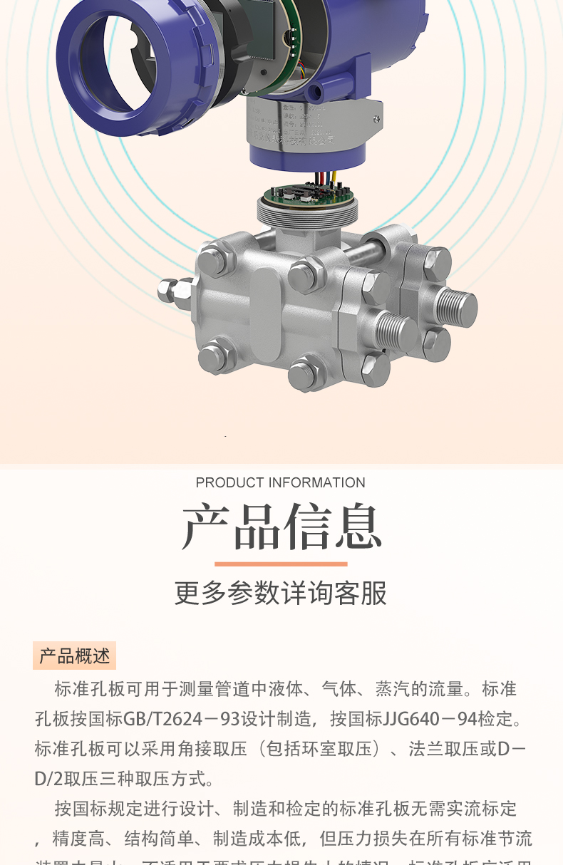 孔板流量計是將標準孔板與多參數差壓變送器配套組成的高量程比差壓流量裝置,具有精度高、結構簡單、維修方便性能穩定等特點,無需實流標定,制造成本低。可測量氣體蒸汽、液體的流量,廣泛應用于石油、化工、冶金、電力等行業