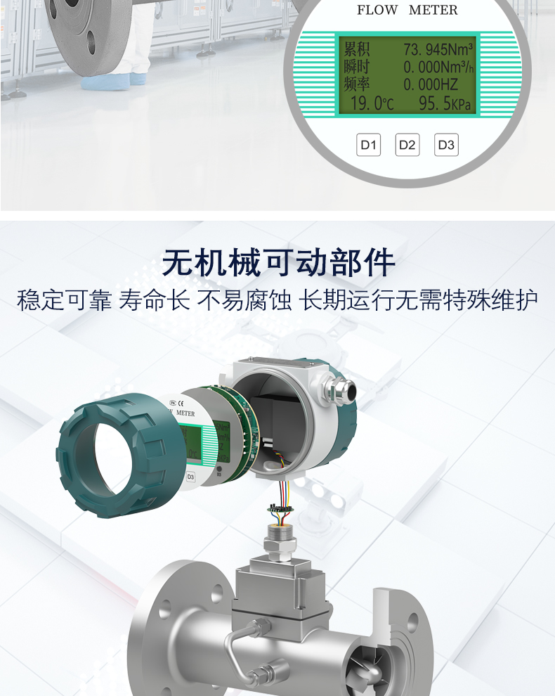 2、結構簡單,安裝維護方便,無可動部件、無機械磨損。